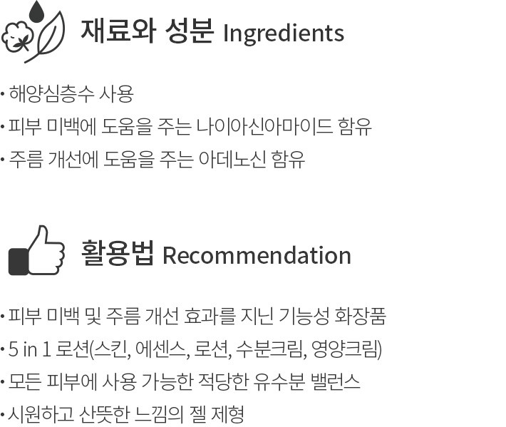 ・유의사항:모든 피부타입에 적합한 제품이지만,피부가 유독 건조한 편이거나 한겨울에는 크림을 한 겹 더 발라주세요.