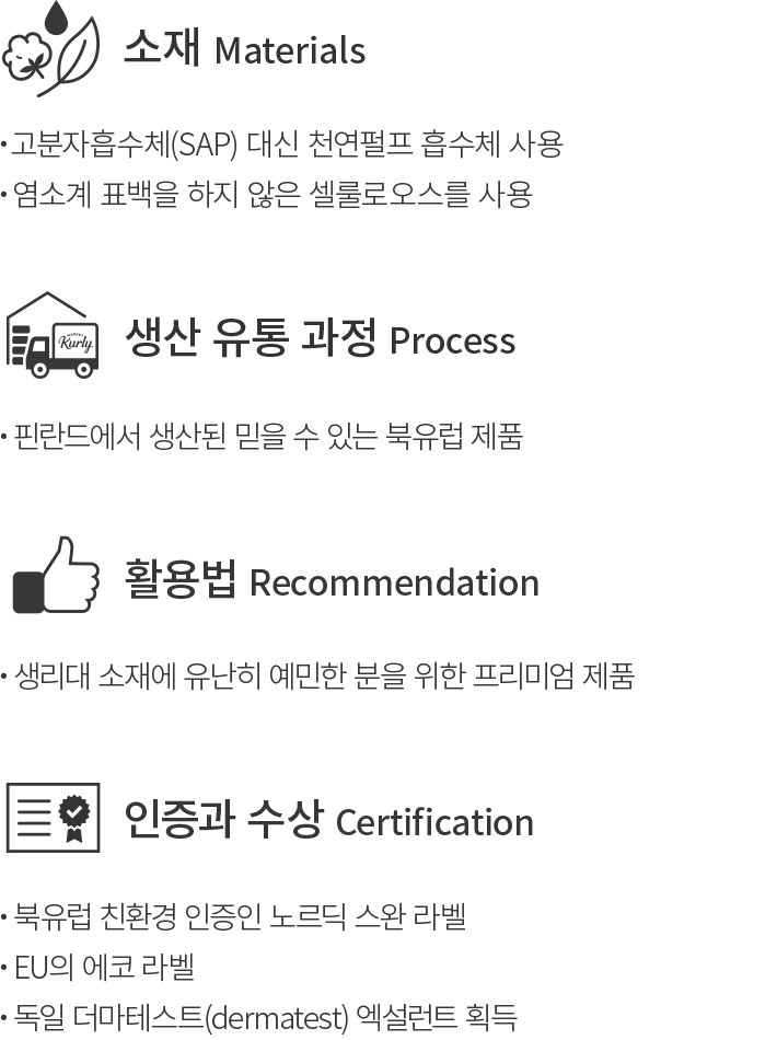 국내에서 생리대 파동이 일어났을 당시 생리대에 예민한 분들이 선두적으로 찾아 쓰기 시작한 생리대가 있습니다. 핀란드에서 탄생한 뷰코셋이에요. 생산부터 폐기까지 친환경적인지를 깐깐하게 따진 뒤에야 부여되는 북유럽의 친환경 인증,스완 라벨도 붙은 제품이랍니다. 고분자흡수체(SAP) 대신 천연펄프 흡수체와 유기농 면이 사용되어,민감한 피부를 다독여 주지요. 3팩을 묶었으니 넉넉히 구비해두고 써 보세요.