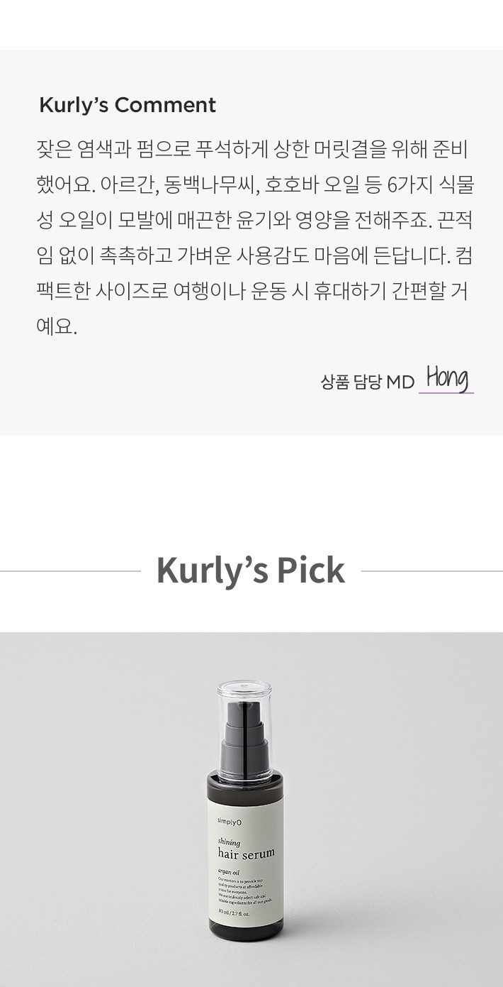 ・ 특징:푸석하고 거친 모발을 촉촉하게 케어하는 세럼이에요. 우아한 플로럴 머스크 향이 느껴집니다.