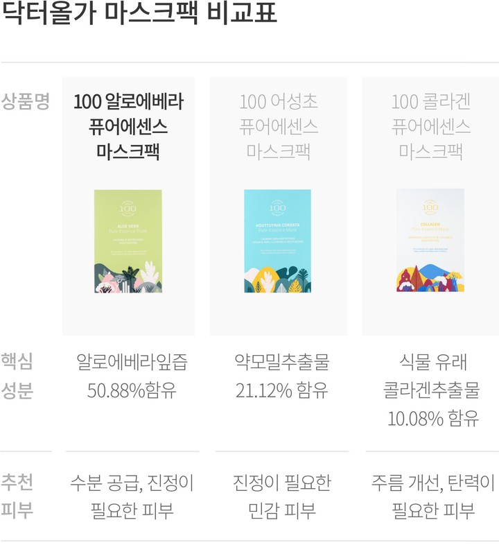 수분 공급과 진정을 위한 데일리 마스크팩 [닥터올가] 100 알로에베라