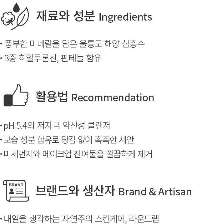 ・사용감:소량으로도 조밀한 거품이 풍성하게 일어나요. 세안 후에도 피부결이 뻣뻣하거나 건조한 느낌이 없이 부드럽게 마무리됩니다.