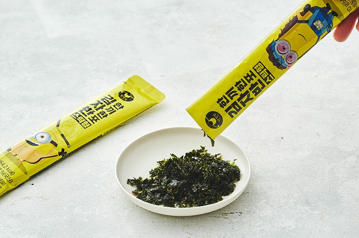 스틱형 포장으로 더욱 간편해진 만전김의 스틱 김자반을 소개합니다. 남길 걱정 없이 편하게 사용할 수 있도록 딱 한 번에 먹기 좋은 양만큼 담았어요. 고소하고 짭짤한 김자반은 쌀밥에 얹어 먹으면 금세 한 공기를 비울 수 있게 하는 자타공인 밥도둑이죠. 주먹밥이나 계란말이 토핑 등으로 다양하게 활용해 보세요. 귀여운 미니언즈가 그려져 있어 아이의 도시락 반찬으로도 안성맞춤이랍니다.