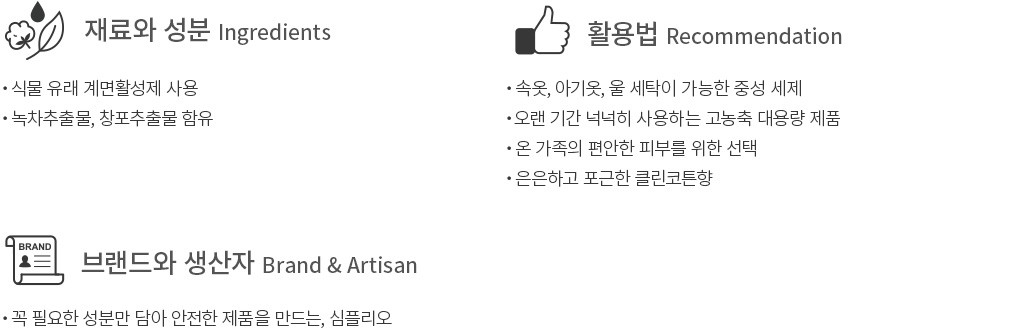 ・특징:일반 의류부터 섬세한 아기 옷과 울세탁이 가능한 중성세제입니다. 소량만 사용해도 충분한 세탁 효과를 볼 수 있는 고농축 제품이에요.