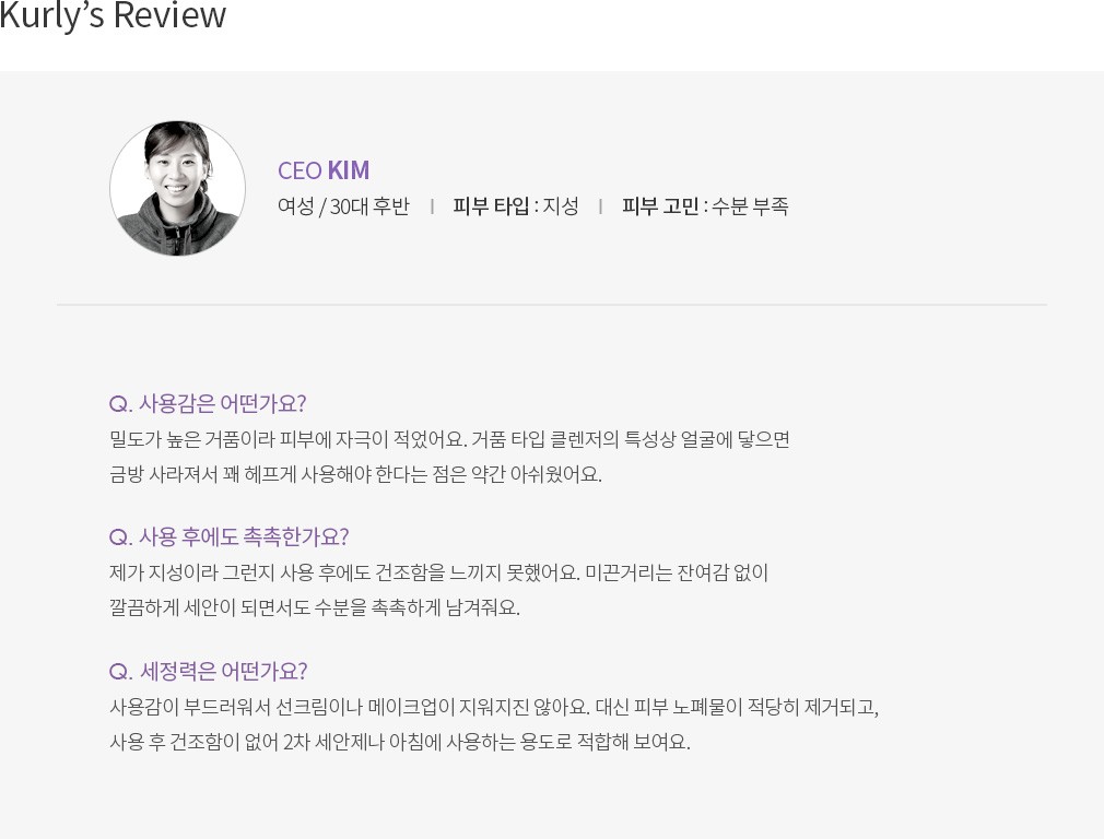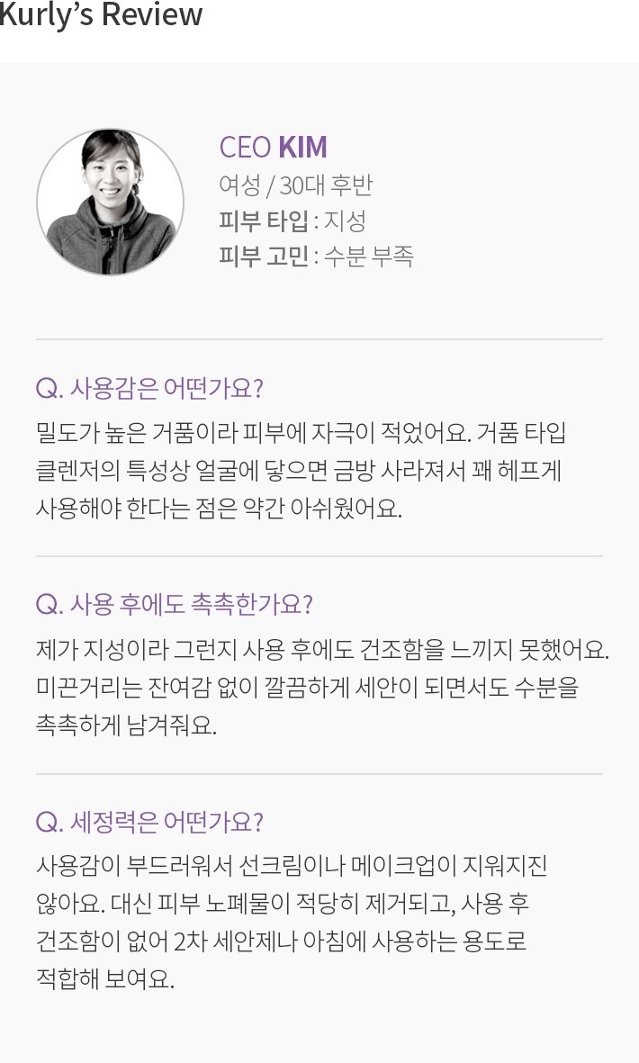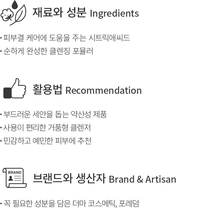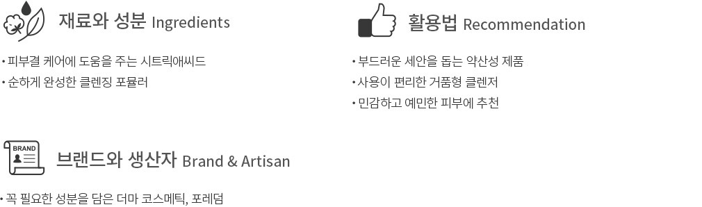 ・특징:피부 자극을 최소화하여 부드러운 세안을 가능하도록 하는 약산성 클렌저예요.