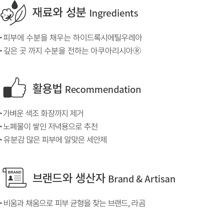 ?유의사항:뽀드득한 마무리가 부담스러운 피부에는 추천하지 않습니다.