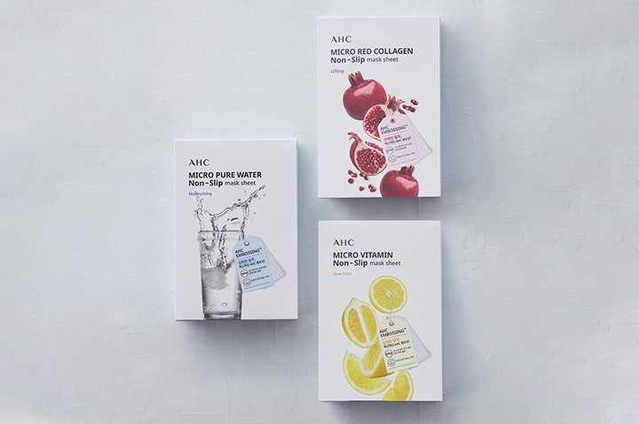 매일 부담 없이 사용하기 좋은 AHC의 마이크로 착붙마스크 4종을 소개할게요. 무려 26,398개의 양면 홀로 이루어진 엠보싱 원단이 얼굴의 굴곡을 따라 완벽히 밀착되어 에센스의 흡수를 도와주는데요. 특허 성분 AMF*는 피부에 풍부한 수분을 공급해주죠. 무자극 제품임을 확인했으니 민감한 피부도 안심하고 사용할 수 있답니다. 4종 중 피부 고민에 맞게 선택해보세요.
