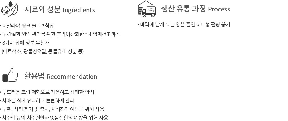 ・불소 함량:불소 1,000ppm을 함유하고 있어요. 어린이나 민감하신 분은 구매 전 참고하세요.