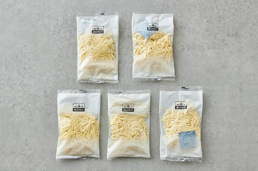 ・특징 :면발이 얇고 넓적한 칼국수 생면 5인분을 1인분씩 소포장하여 담았어요.