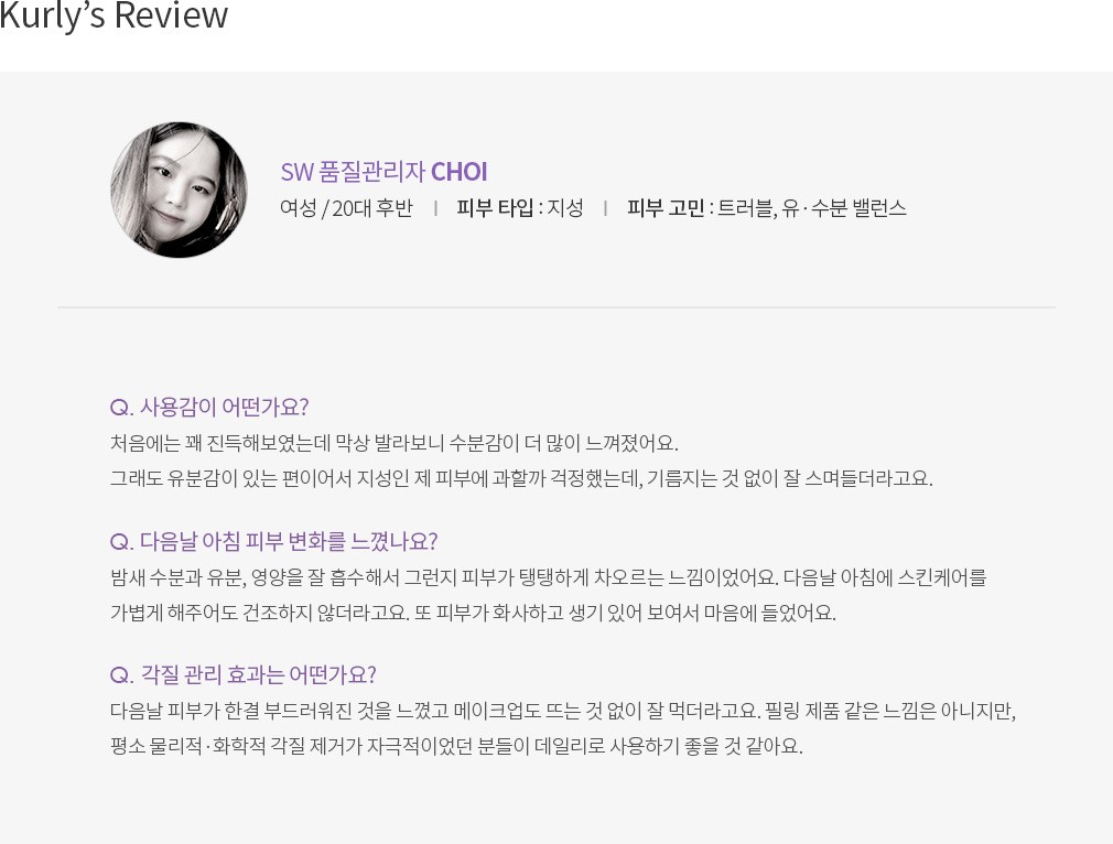 ・사용감:약간의 유분감이 있으나,과하게 번들거리거나 끈적이는 것 없이 피부에 편안하게 스며들어요.