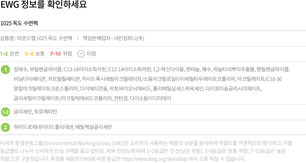 하루 동안 자외선,스트레스,외부 자극 등으로 지친 피부를 위해 라운드랩의 1025 독도 수면팩을 소개할게요. 하늘타리뿌리추출물을 함유하는 Derma-Clock™가 피부를 밤새 생기 있고 건강하게 관리해주고요. 특허 기술*로 풍부한 미네랄을 담아낸 울릉도 해양 심층수는 피부를 촉촉하게 채워줍니다. 순한 각질관리를 돕는 PHA 성분도 담았으니,다음날 아침 한결 매끈해진 피부를 만나보세요.