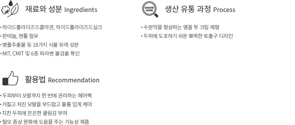 ・살리실릭애씨드:두피 속 각질을 녹이는 목적으로 사용하는 성분입니다.