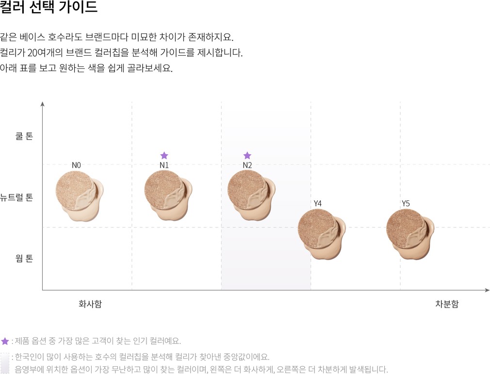 ・ 특징:17호 피부를 위한 퓨어한 색감의 아이보리 컬러로 옐로우 베이스와 핑크 베이스가 모두 사용할 수 있는 뉴트럴 색상입니다.