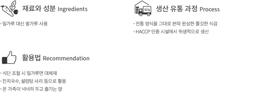 ・특징:밀가루 대신 쌀가루로 만들어 한층 쫄깃한 식감을 마음 편히 즐길 수 있어요.
