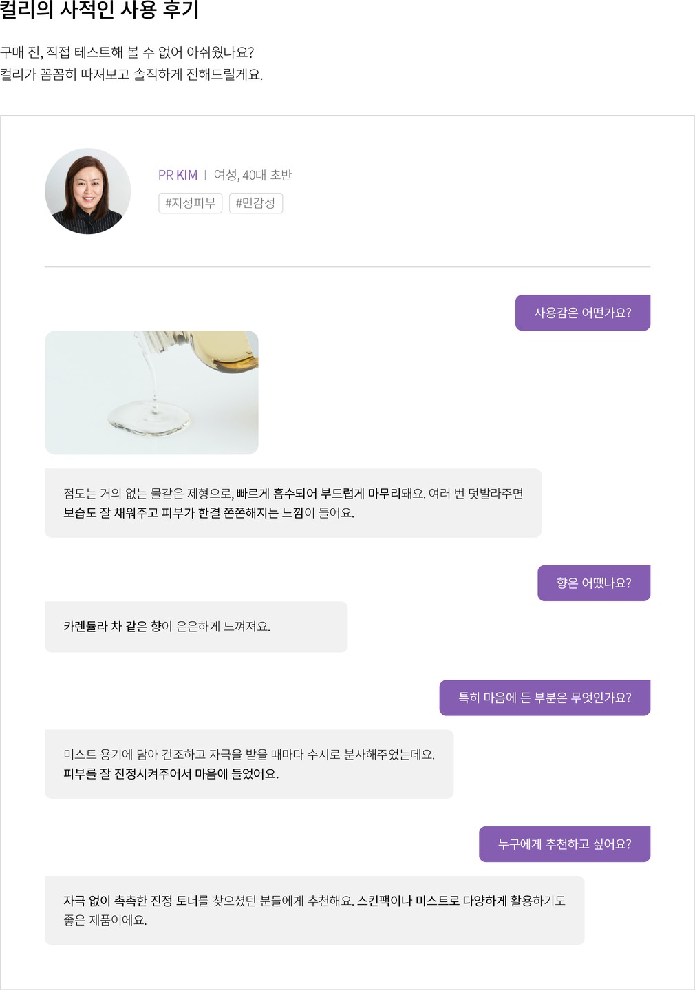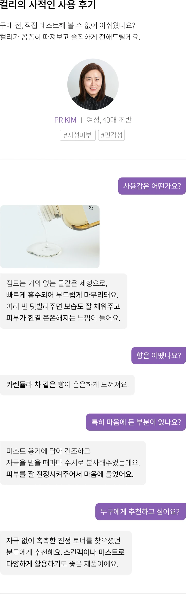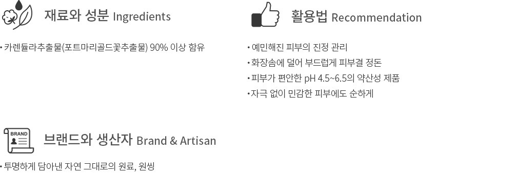 ・특징:건조하고 예민해진 피부를 촉촉하게 채워주고 편안하게 다독여줍니다.