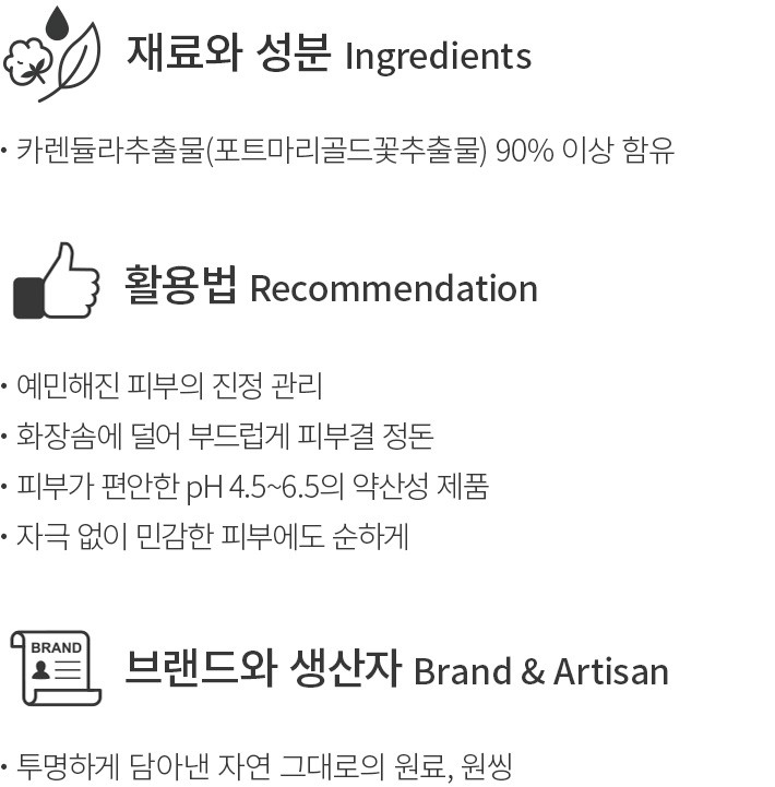 01~02. 카렌듈라 꽃잎 추출물・선택 가이드:①150mL,②300mL 중 선택하세요