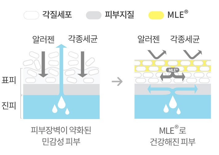 튼튼한 피부와 보습을 위한 선택 피부가 연약한 아이들이나 예민한 피부를 가지신 분들은 작은 자극에도 민감한 반응을 보여요. 아토팜은 이를 개선하기 위해 피부 장벽 기술에 대해 끊임없이 연구했어요. 그 결과 건강한 피부에서 나타나는 라멜라 지질 구조와 유사한 MLE® 성분을 만들어냈죠. MLE®가 들어간 화장품은 건강한 피부 장벽과 비슷한 특유의 십자 문양 구조를 나타내는데요. 여러 임상실험을 통해 피부에 흡수되면서 수분이 빠져나가는 것을 막아주고 외부 자극으로부터 피부를 보호하는데 도움을 준다는 것을 인정받았답니다. 독자 개발 피부 장벽 기술로 피부의 입장에서 한발 더 나아가는 아토팜의 화장품을 만나보세요.