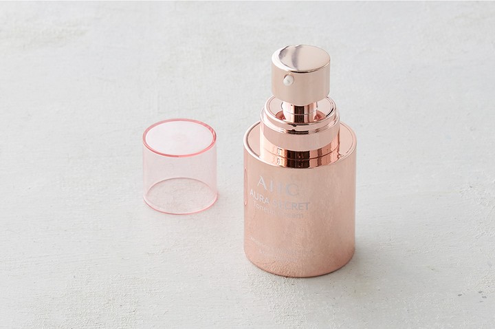 아우라 시크릿 톤업 크림・특징:백탁 없이 자연스러우면서도 피부에 환하고 생기 있는 핑크빛을 더해주는 톤업 크림입니다.