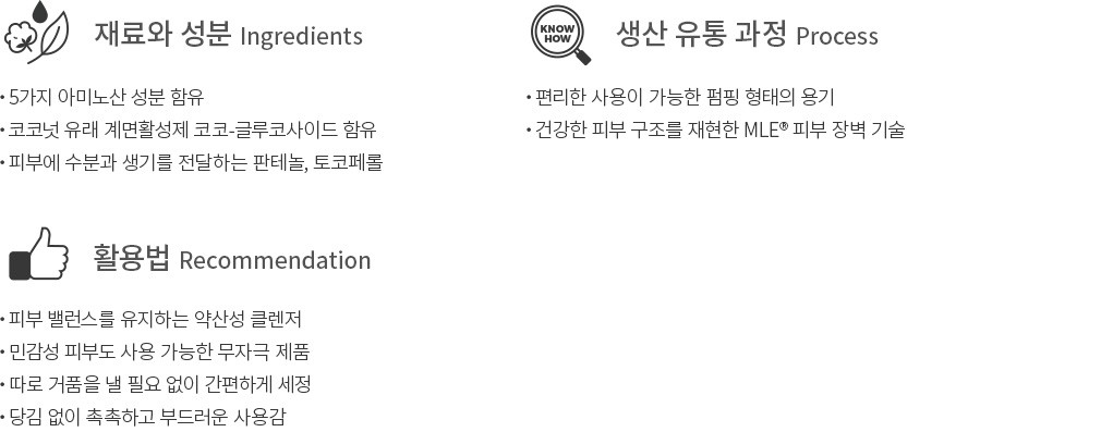 ・ 사용감:촉촉하고 부드럽게 세정 되며 세안 후엔 당김 없이 마무리됩니다.