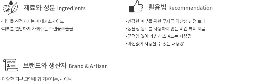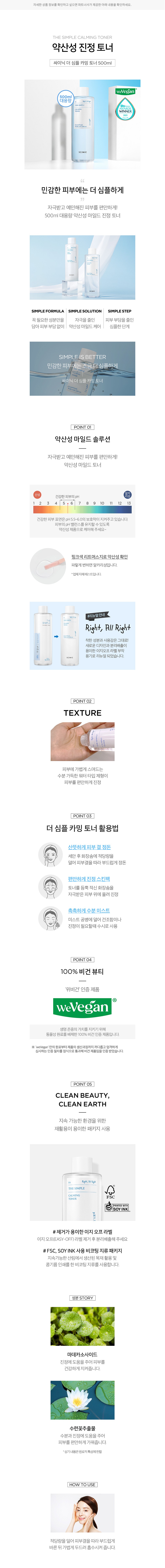 피부 위에 그 어떤 부담스러움도 남기지 않는 싸이닉의 더 심플 카밍 토너를 만나보세요. 불필요한 성분과 동물성 원료는 모두 덜어내고 진정과 보습에 필요한 열 몇 가지 성분만을 남겼습니다. 피부에 부드럽게 스며들어 딱 필요한 만큼의 수분감만 채워주도록 말이죠. 쉽게 뒤집어지는 까다로운 피부에 묵직한 무게 대신 편안함을 선사하고요. 스킨 케어 다음 단계에 영향을 주지 않는 기초다운 기초랍니다. 500mL 대용량으로 준비했으니 화장솜에 듬뿍 적셔 아낌없이 사용해 보세요.