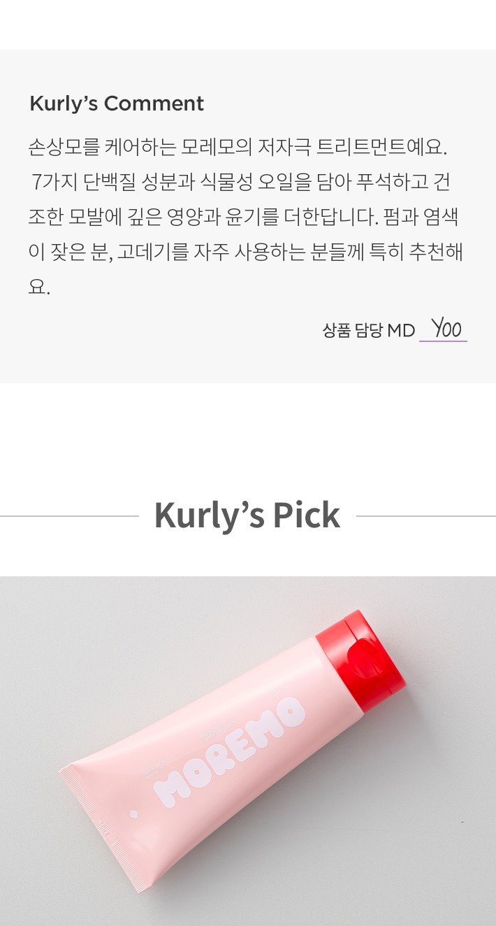 ・ 특징 :쫀쫀함이 느껴지는 되직한 제형이에요. 젖은 모발에 도포 후 5-10분 정도 방치한 뒤 헹구어 주세요.