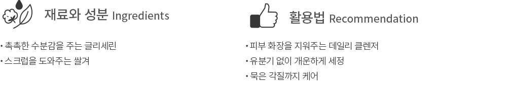・ 사용감:쫀쫀한 거품이 유분기를 남기지 않고 뽀득하게 씻어줍니다. 세안 후에는 다소 건조함이 느껴질 수 있어요.