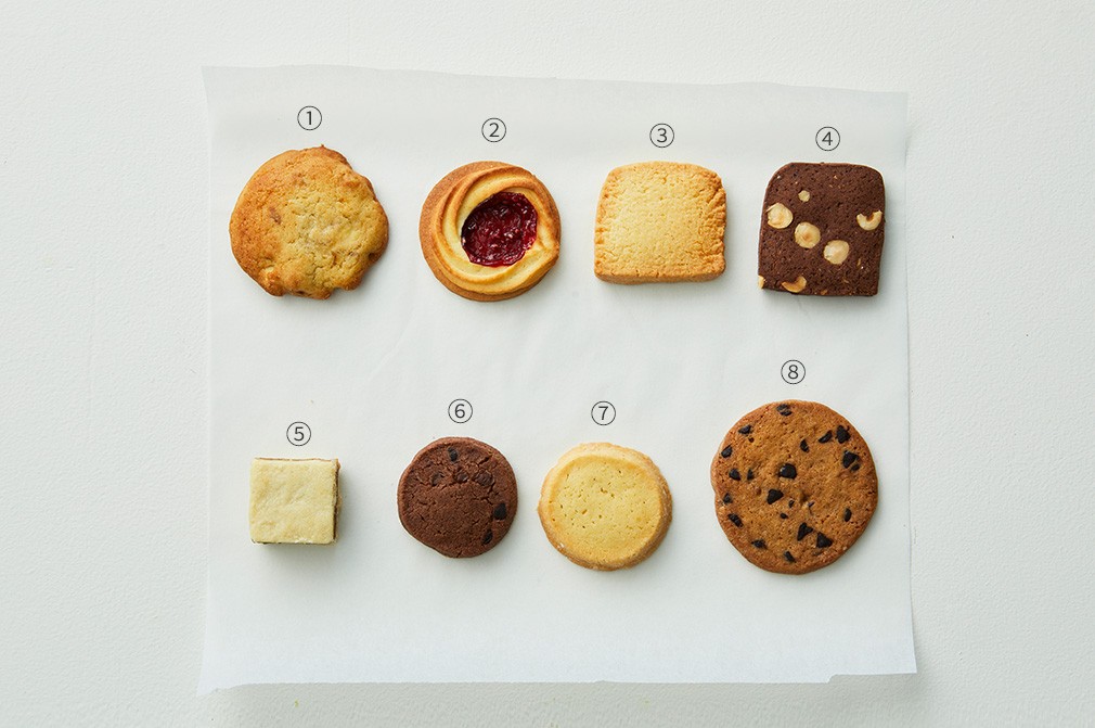 ?구성:①소프트화이트,②프랑소아,③코코넛쿠키,④헤이즐넛쿠키,⑤도피누아,⑥초코디아망,⑦디아망,⑧초코칩쿠키 각 1개입