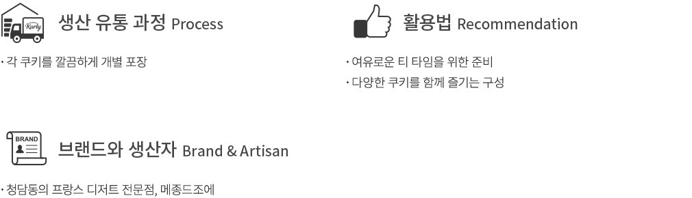 ?특징:부드러운 쿠키 표면에 설탕을 입혀 구운 쿠키예요. 담백한 쿠키와 함께 은은하게 감도는 달콤함이 매력적이랍니다.