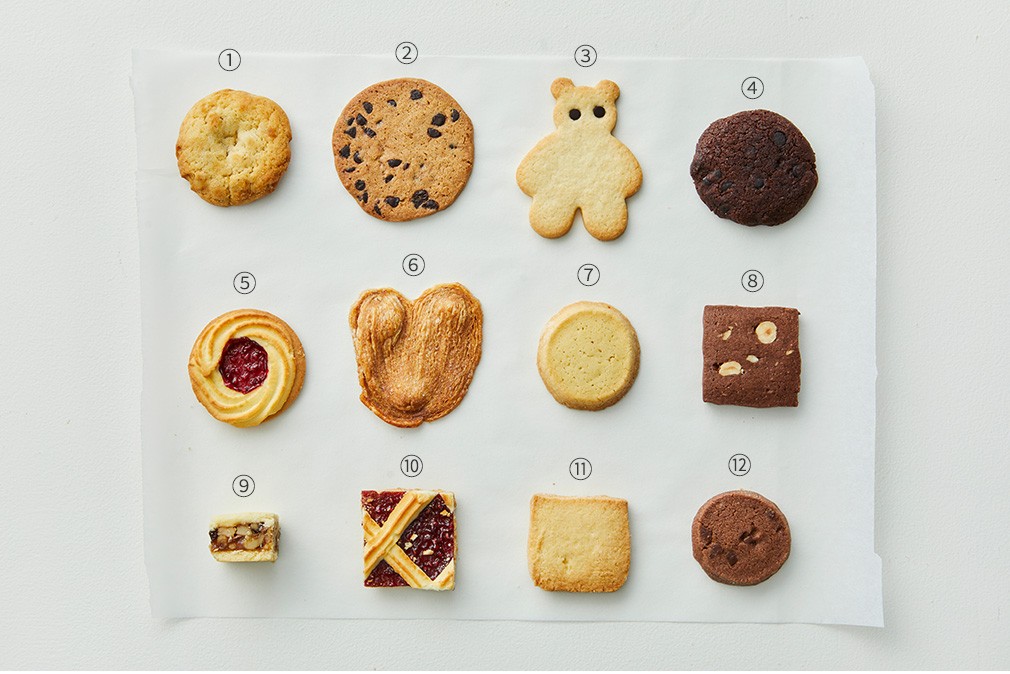 ?구성:① 소프트화이트,② 초코칩쿠키,③ 동물쿠키,④ 소프트초코,⑤ 프랑소아,⑥ 팔미에,⑦ 디아망,⑧ 헤이즐넛쿠키,⑨ 도피누아,⑩ 산딸기타르틴,⑪ 코코넛쿠키,⑫ 초코디아망 각 1개입