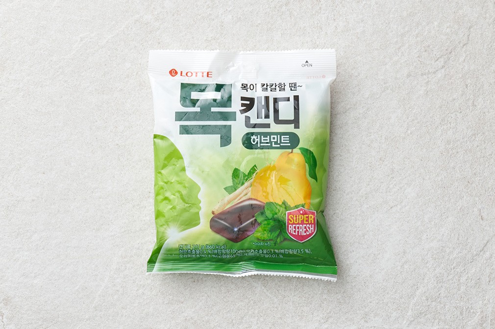 칼칼한 목을 위한 청량감 가득 캔디 [롯데] 목캔디 허브