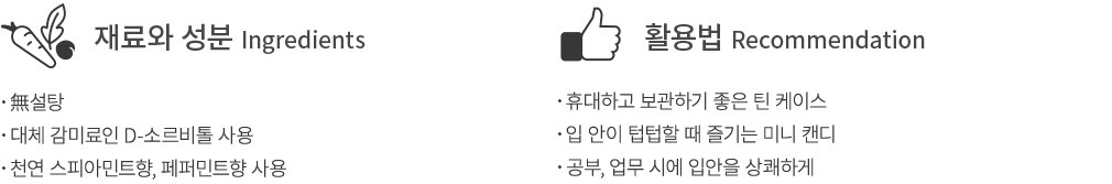 ・특징:스피아민트의 개운한 향이 입 안에 은은하게 번지는 캔디예요.