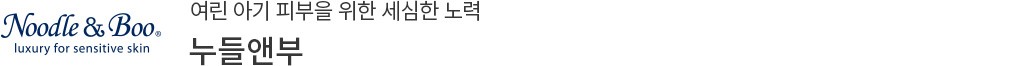 누들앤부는 미국의 평범한 한 아기 엄마로부터 시작된 프리미엄 베이비 스킨케어 브랜드입니다. 민감성 피부로 고생하는 아기를 위해 밤낮 없이 연구에 몰두했죠. 성분을 깐깐하게 따져 고르고,여러 테스트를 면밀히 거쳐 탄생한 스킨케어 제품들은 지금의 누들앤부를 있게 했습니다. 신생아부터 어린아이까지,민감하고 여린 피부를 건강히 가꿔주는 데에만 온전히 집중한 누들앤부를 이제 컬리에서도 만나보세요.