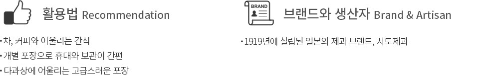 모나카는 얇은 찹쌀 과자 사이 달콤한 팥앙금이 샌딩된 일본의 전통 간식이죠. 이번에는 오랜 전통을 가진 일본의 제과 브랜드,사토제과의 제품으로 준비했어요. 지금 소개하는 아주끼 모나카는 부드러운 팥소가 가득 들어있는데요. 팥을 뜻하는 아주끼라는 이름답게 팥의 풍미가 진하게 느껴진답니다. 10개를 각각 개별 포장해 담아서 출출할 때마다 한 개씩 챙기는 간식은 물론이고요. 고급스러운 일본풍 포장지에 감싸져 있으니 다과상에 올리기에도 제격이에요.