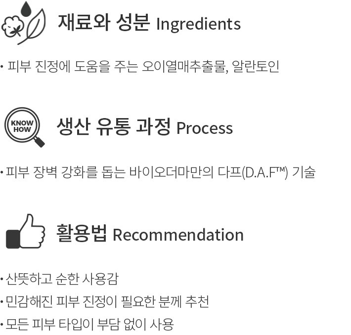 ・ 프로필렌글라이콜:제품의 수분이 날아가는 것을 방지하고 보습을 도와주는 피부보습 성분입니다.
