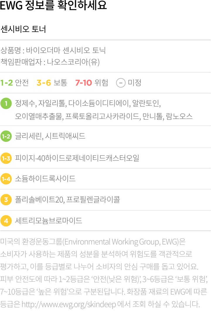 컬리는 EWG로부터 보통,위험 등급을 받은 성분이라 하더라도 숨기지 않고 정직하게 공개합니다. 더불어 우려되는 성분에 대한 정보를 함께 제공해 드리오니 구입 전 반드시 확인해 주세요.