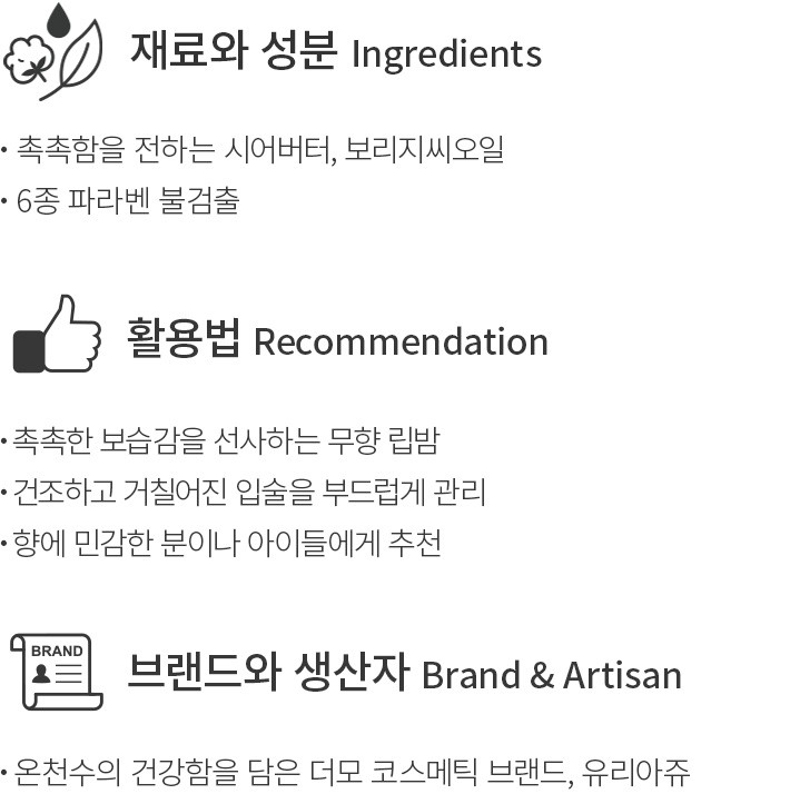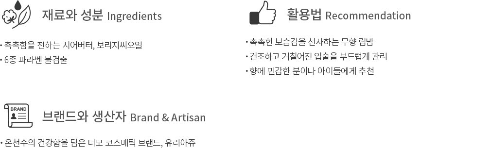 촉촉한 보습감을 선사하는 무향 립밤 [유리아쥬]