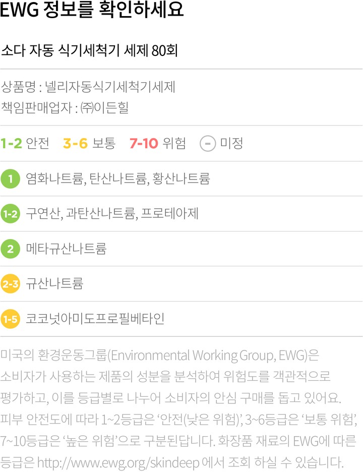 ・ 규산나트륨:완충화제,pH조정제,부식방지제의 목적으로 사용되는 성분입니다.