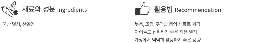 활용팁?조리 전,기름을 두르지 않은 팬에 멸치를 중불에서 달달 볶은 후 사용하세요. 잡내 및 비린내를 깔끔하게 잡을 수 있어요.