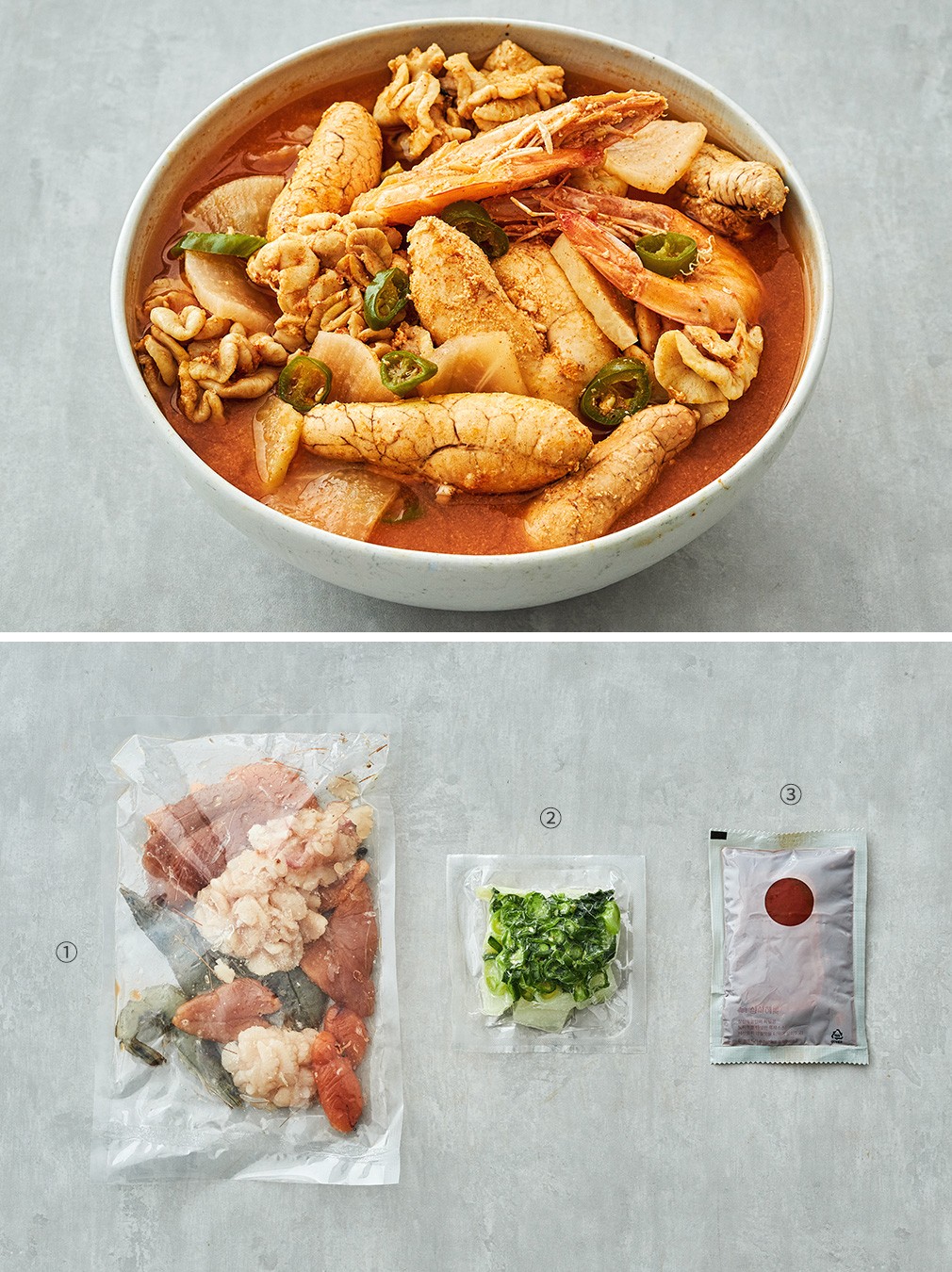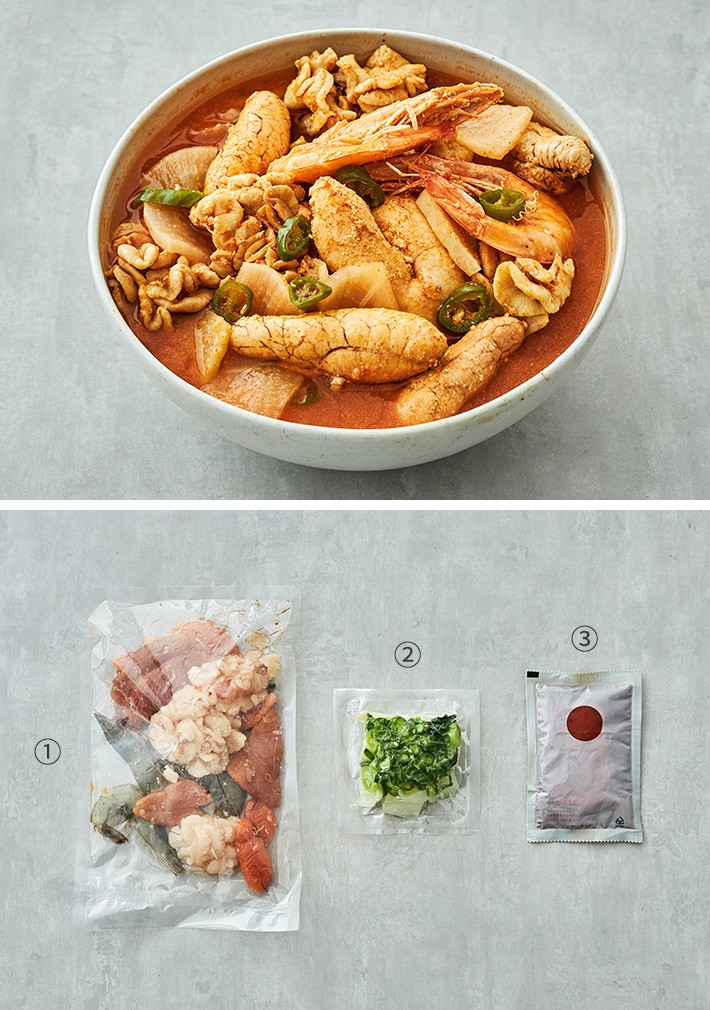 ・구성:①모듬 해물(명태,대구곤이,홍합살),②채소(무,대파,청양고추),③양념 소스