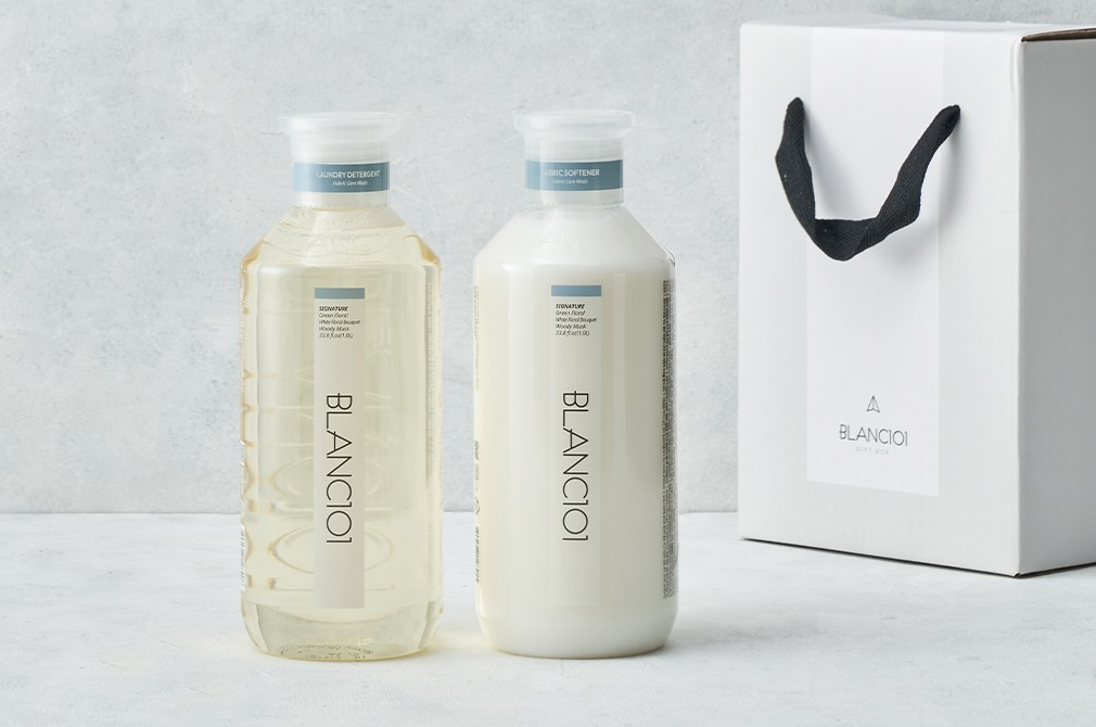 블랑101 하면 이미 베이비 페어에서 만나보았거나 출산 선물로 추천을 받아보았을 수 있어요. 예비 부모들의 마음을 사로잡을 만큼 성분에 대한 까다로운 시선,패키지의 고급스러움,조향의 섬세함까지 빈틈없이 갖춘 브랜드랍니다. 블랑101을 대표하는 시그니처 세탁세제와 섬유유연제를 선물세트로 준비했어요. 한 번 스치기만 해도 도무지 잊기 어려운 포근함으로 사랑받는 향이죠. 세련되면서도 일상에서 소임을 다할 실용적인 선물이 되어줄 거예요.