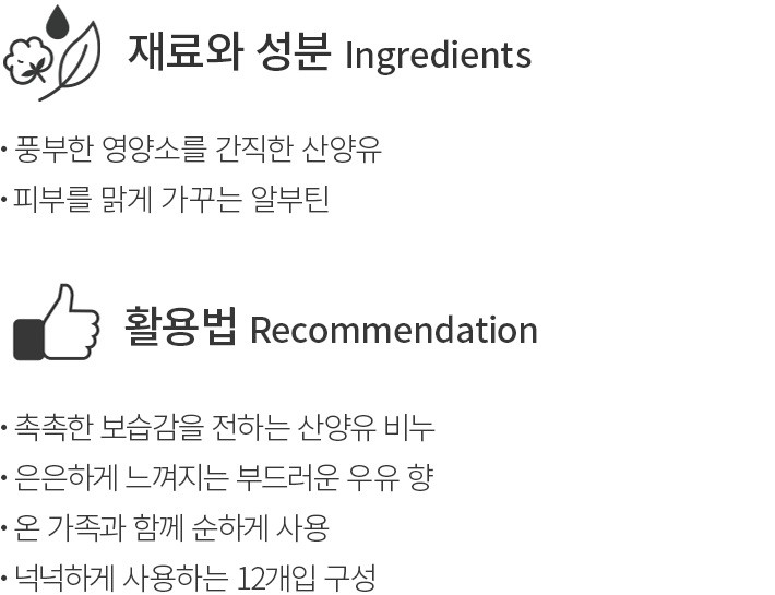・특징:산양유를 함유해 풍부한 영양과 보습감을 전하는 비누입니다.