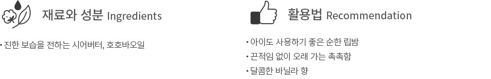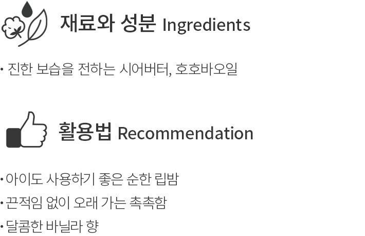 베이비 립밤・ 제형:너무 무르지 않는 제형으로 매끄럽게 발려요.