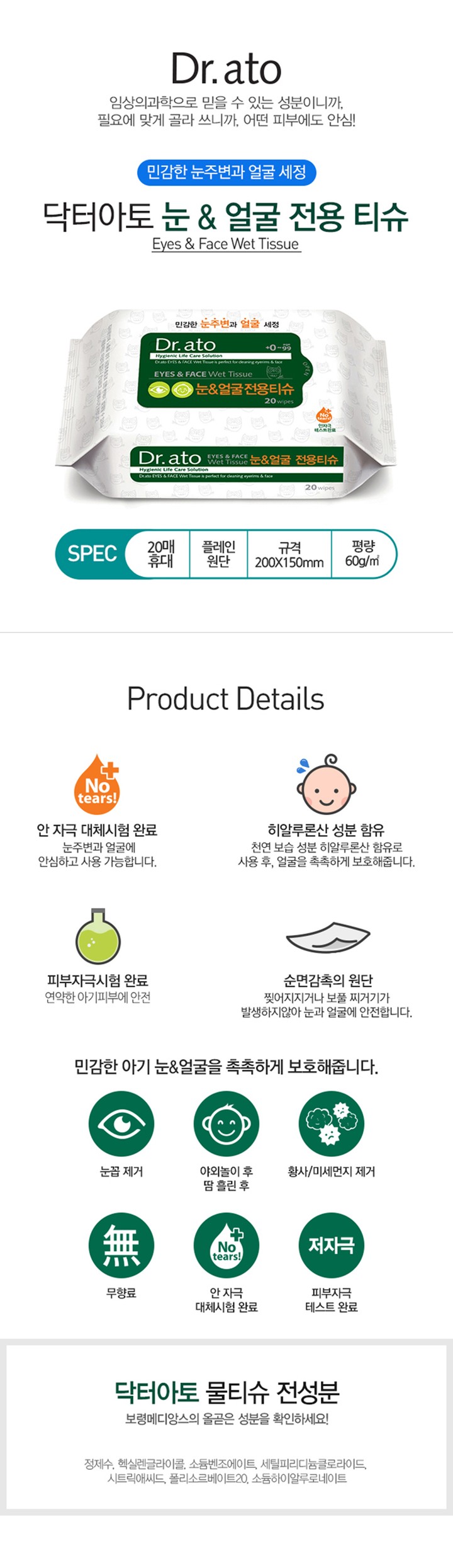 눈&얼굴 전용티슈・ 개수:1묶음(20매 X 6개입)