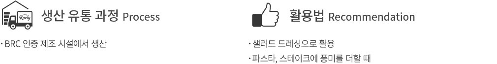 ・특징:올리브 열매를 압착해 과육을 걸러내지 않고 그대로 담은 올리브 오일이에요. 올리브 특유의 풍성한 맛과 향미를 느낄 수 있답니다.