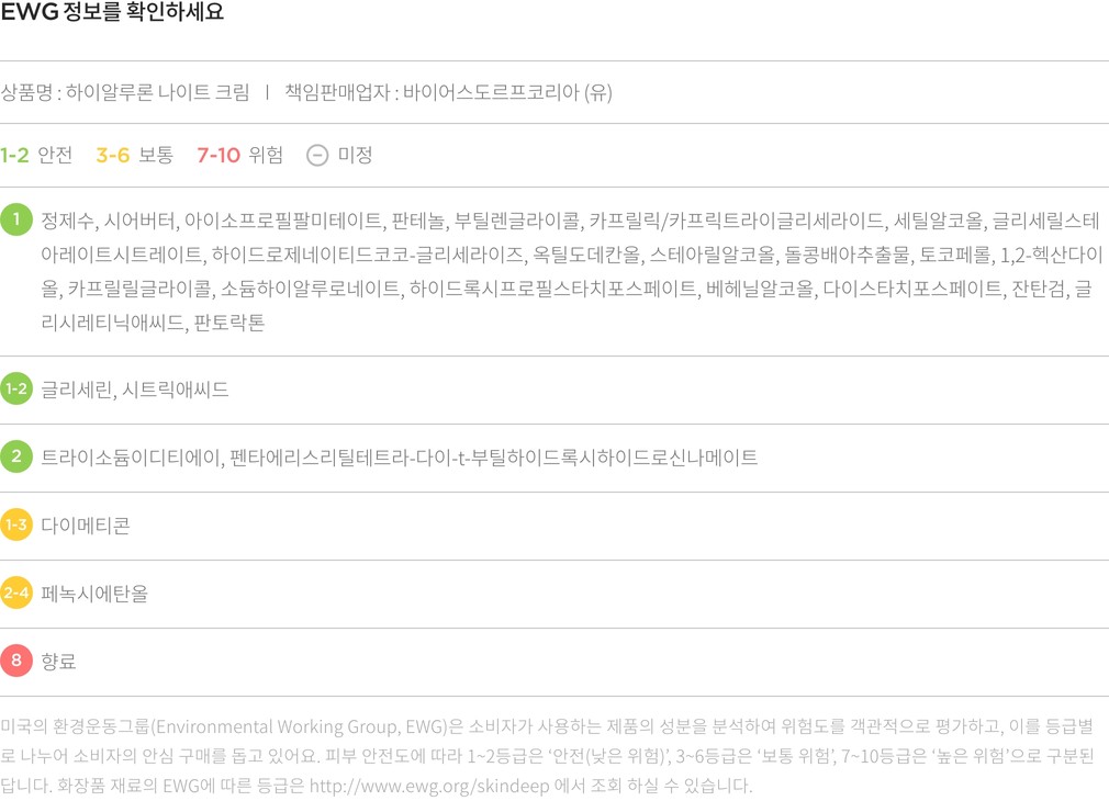 ・ 특징:밤사이 피부를 촉촉하고 탄력 있게 케어하는 나이트 크림이에요.