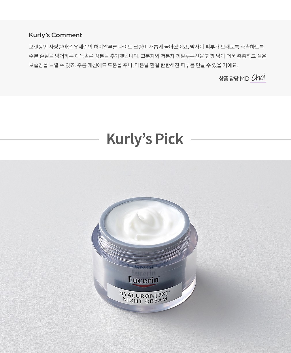 추천 루틴・ 유세린 하이알루론 컨센트레이트와 섞어 마사지 크림으로 활용하면 더욱 촉촉한 생기가 전해집니다.