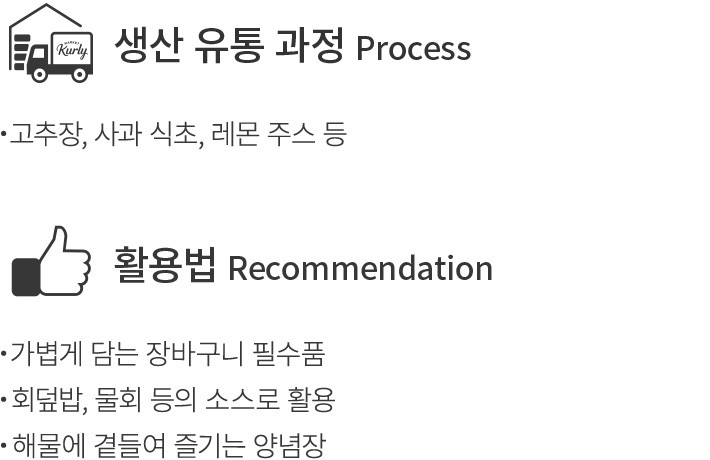 ‘고추장’ 하면 빠질 수 없는 발효장의 명가,해찬들에서 만든 초고추장을 컬리에서 만나 보세요. 해찬들의 비법 고추장에 사과 식초와 레몬 주스를 넣어 상큼함을 더했습니다. 설탕과 올리고당으로 기분 좋은 단맛을 냈고요. 회,조개 등의 해산물에 곁들이면 해물의 비린 맛은 잡아주고 감칠맛만을 돋우어 준답니다. 싱그러운 채소를 더한 회덮밥,물회 등의 양념으로 즐겨도 좋을 거예요.