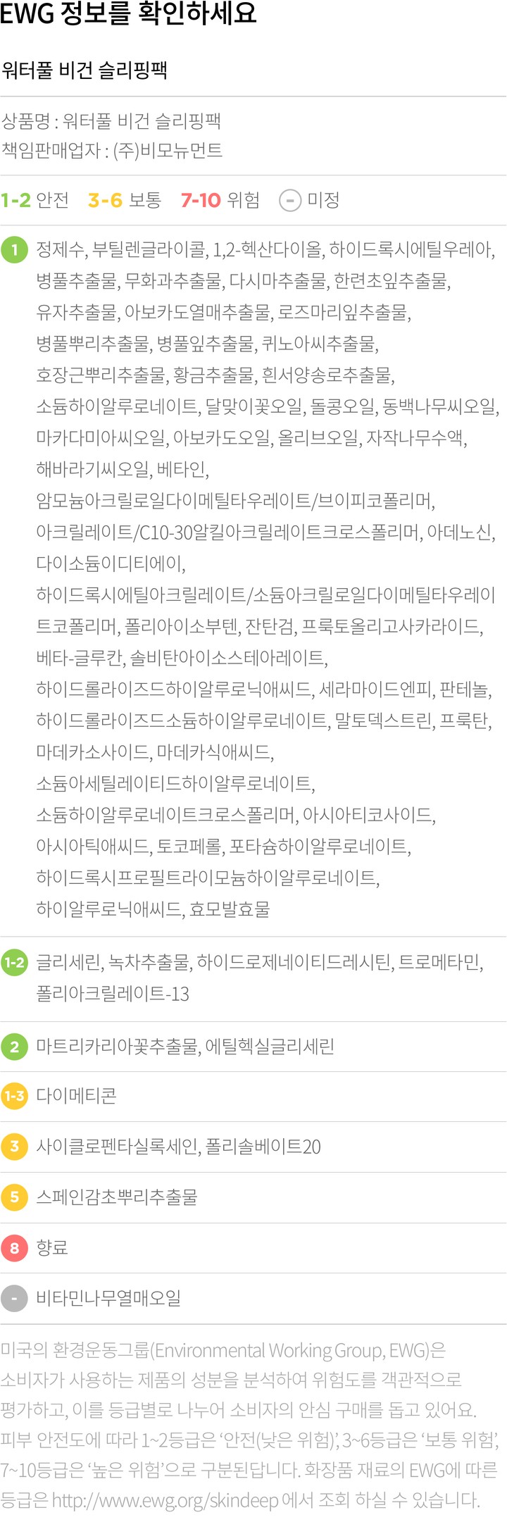 컬리는 EWG로부터 보통,위험 등급을 받은 성분이라 하더라도 숨기지 않고 정직하게 공개합니다. 더불어 우려되는 성분에 대한 정보를 함께 제공해 드리오니 구입 전 반드시 확인해 주세요.