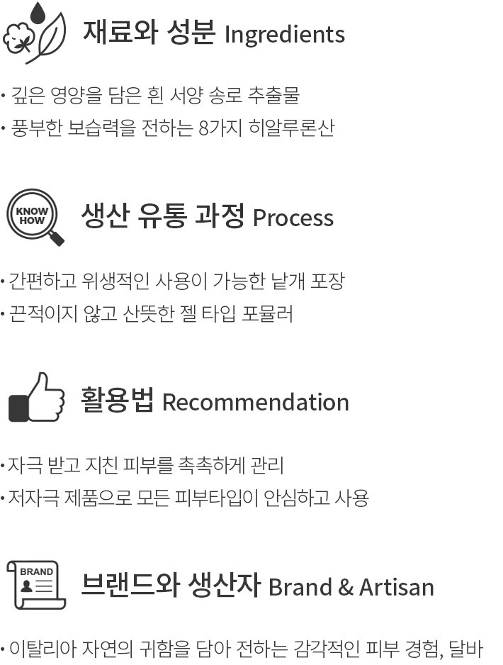 달바는 ‘땅 속의 다이아몬드’라 불리우는 화이트 트러플의 최고 산지,이탈리아의 Alba 마을에서 영감을 받아 탄생한 브랜드입니다. 깨끗하고 아름다운 마을이 품고 있는 귀한 트러플처럼,달바는 느리게 자란 원료의 생명력을 가득 담은 제품들을 출시하고 있어요. 자연의 귀함을 전달하는 달바의 감각적인 제품들을 만나보세요.