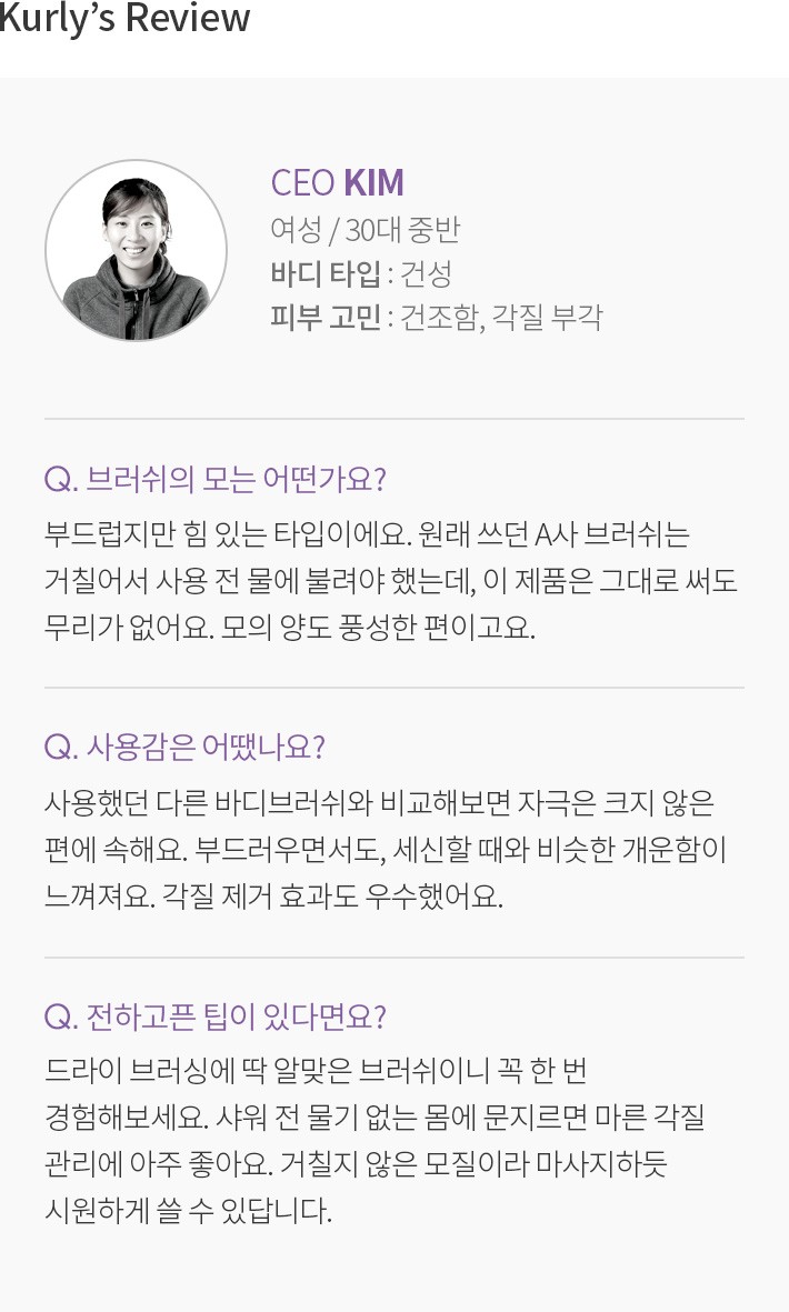 Tip. 드라이 브러싱은 주 1회,샤워 브러싱은 2~3회 이용을 각각 권장하니 참고하세요.