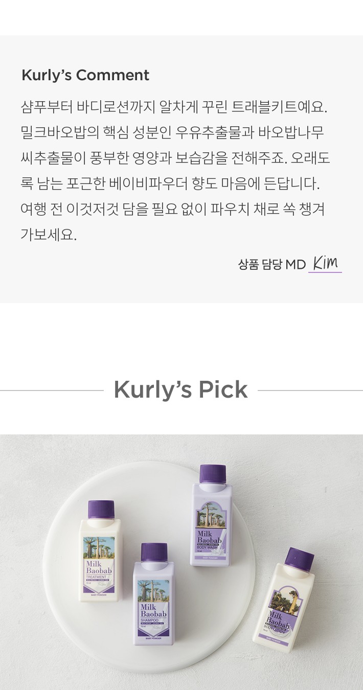 ・ 특징:포근한 베이비파우더 향의 트래블키트입니다.